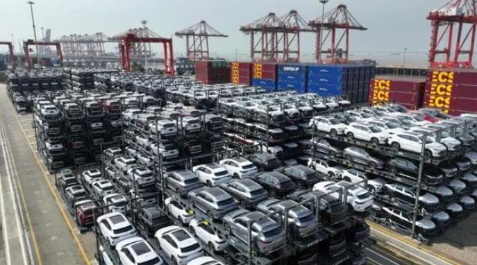 2023年(nián)7月(yuè)11日(rì),在江蘇省太倉港國™€(guó)際集裝箱碼頭,一(yī)批新能(néng)源汽車(£<×φchē)即将通(tōng)過專用(yòng)↕•¥ 框架運輸方式出口(無人(rén)機(jī)全景照(zh♣ €ào)片)。新華社發(計(jì)海(hǎi)新 攝)
