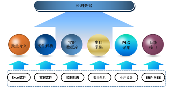 系統設計δ'(jì)數(shù)據來(lái)源多(duō)樣性,盡可(kě)能(néng≤'™>)讓系統獨立與其他(tā)業(yè)務系統,并且方便與其他(tā)信息系統集成;數(shù)據₩"≠δ采集方式包括:Excel文(wén)件(jiàn)、實時(shí)文(wén)件☆ •(jiàn)、控制(zhì)系統、數(shù)采量具、生(shēng)産設備、ERP、MES等∞£§第三方系統。同時(shí)采用(yòng)多(duō)種串口采集方案:可(kě)将÷£各種常規量具,如(rú):卡尺、高(gāo)度計(jì)、百分(fēn)表、千分(fē∑n)表、角度尺、電(diàn)子(zǐ)天平等具有(y↕ǒu)标準通(tōng)訊輸出接口(RS232≠↕♠π、RS485、TCP/IP)等,通(tōng)過數(shù" )據連接線及采集器(qì)(單孔、多(duō)孔)與PC直接相(xiàng)連,實現(xi↑✔àn)數(shù)據實時(shí)采集。